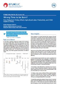 In rural Africa, agriculture employs the majority of the workforce and remains largely rainfed. The timing of pregnancy and child-birth relative to agricultural calendar, especially for the main crop, has potential implications for both farm productivity and maternal health. Pregnancy (especially in the third trimester) and the immediate postpartum period substantially reduce women’s capacity...